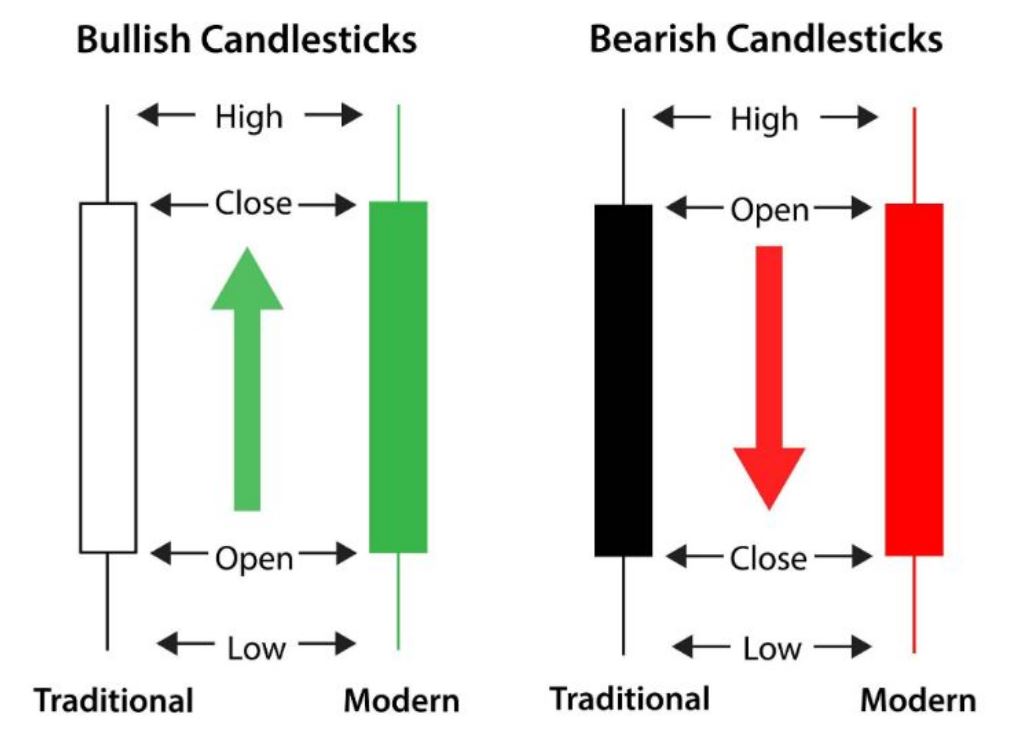 Khi giá đóng cửa thấp hơn giá mở, nến có màu đen hoặc đỏ. Bằng cách này, các nhà giao dịch ngoại hối có thể hình dung rõ ràng hơn về việc mua hay bán.